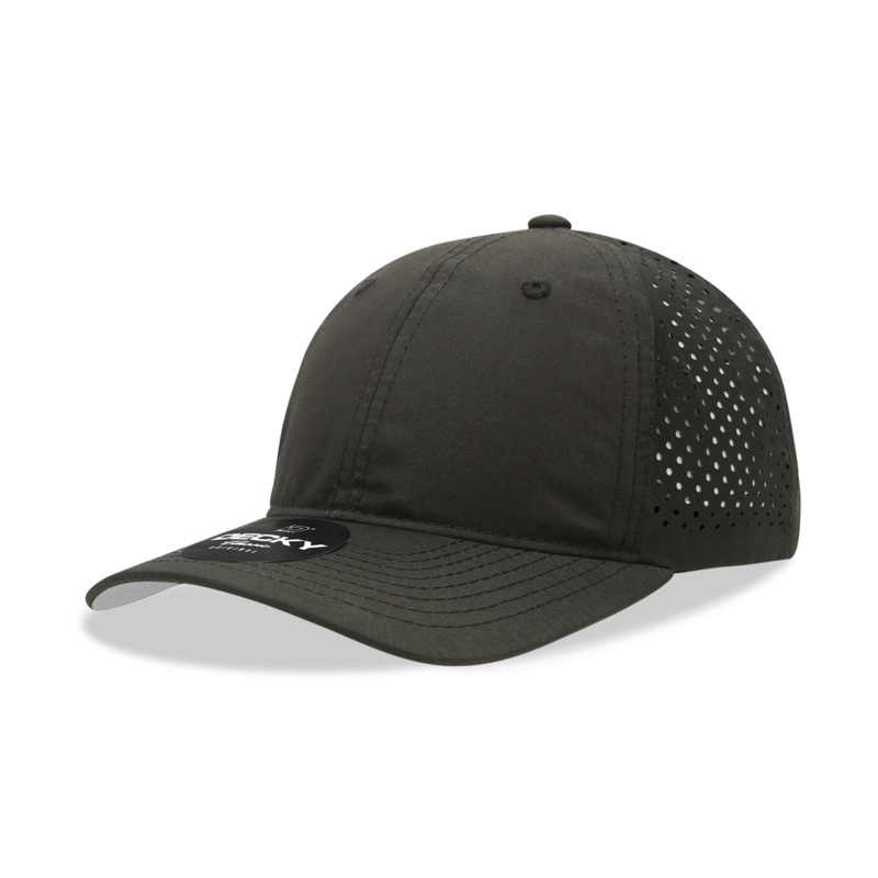 Decky 6224 6 Panel Low Profile Relaxed Perforated Performance Dad HatFabric: PerformanceClosure: Plastic SnapFit: One Size Fits MostPanels: 6Crown: Low; RelaxedVisor: CurvedLaser Perforated Back PanelsMade in BangladeshView All Decky Brand