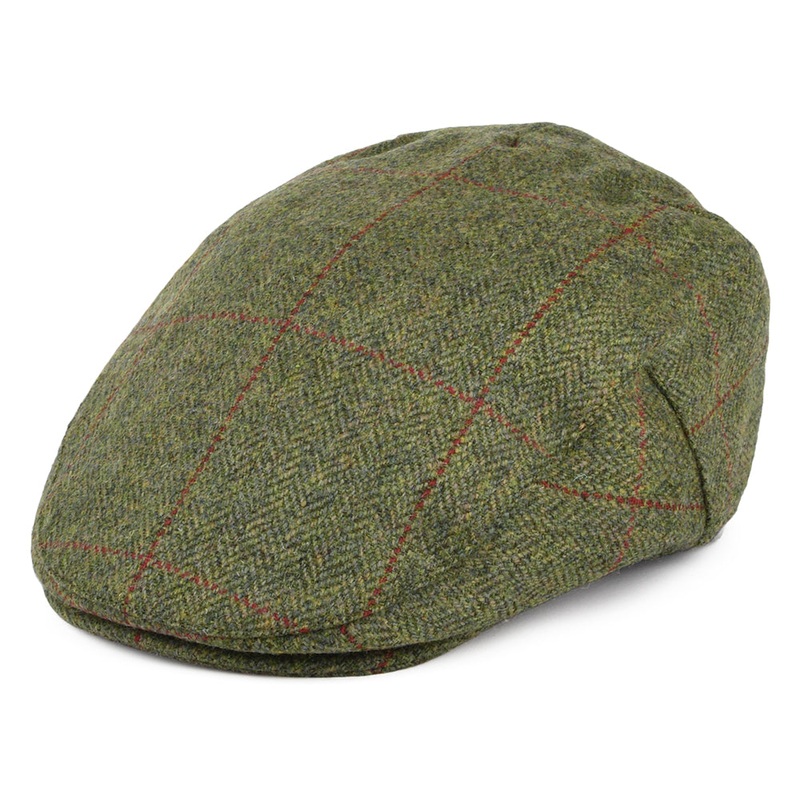 The Failsworth Hats Windowpane Herringbone Waterproof Flat Cap in moss-tan is made of 100% wool tweed from Lovat of Scotland and features a Porelle technology which is waterproof, windproof, breathable and durable. Inside are a soft lining and grosgrain sweatband for comfort. The crown fixed to the brim with a single snap button for a sleek look.