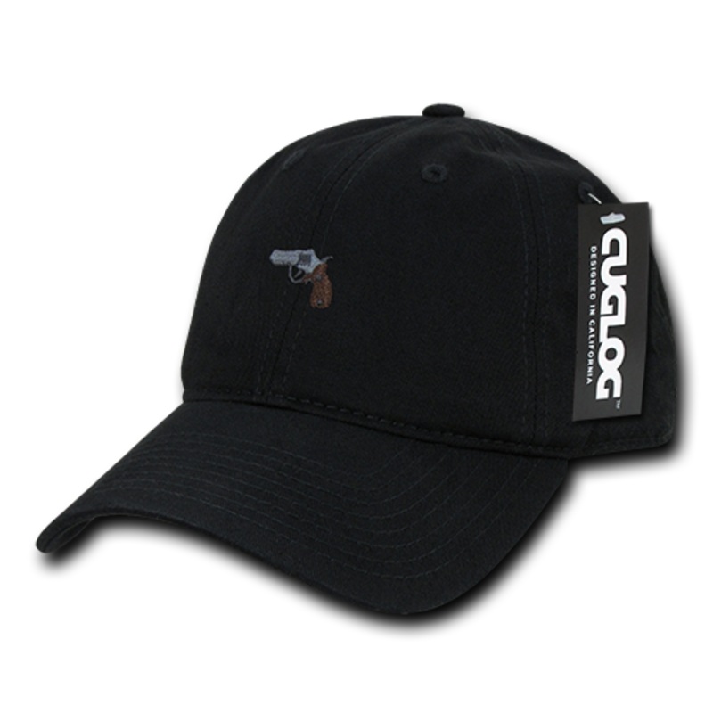 The Gun Pistol Graphic Washed Cotton Polo Cap is a low profile 6-panel relaxed baseball cap and features a cool and stylish small high definition logo embroidered on the front crown, comes with an integrated cotton sweatband, 8 rows stitching across the bill and stitched eyelets for added style. The cap is finished with a sliding adjustable brass buckle closure and pre curved bill for a great comfortable fit.