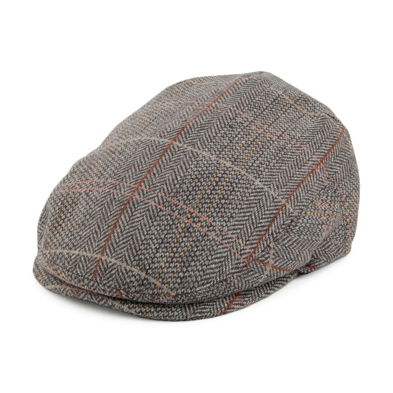 Here is the Jaxon & James Baby Tweed Flat Cap in brown and grey. This classic tweed flat cap style is designed specifically for babies. The hat is made of a wool blend and has a sewn down brim, grosgrain sweatband, lining and an elastic band at the back so it will stretch to fit.