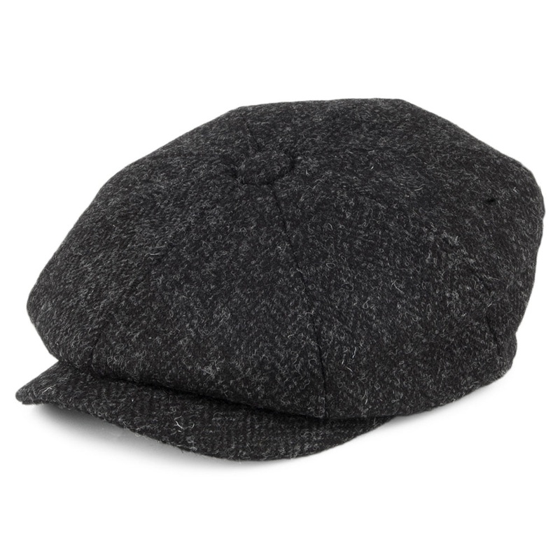 The Jaxon & James HARRIS TWEED Taransay Newsboy Cap in black-charcoal is a simple and stylish design by the legendary hat makers.