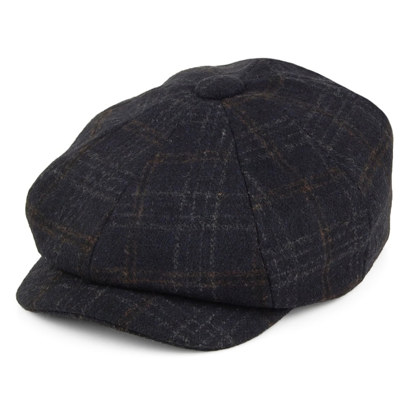 This is the Deanscroft Windowpane Newsboy Cap in navy blue from Joules. This wonderful cap has a windowpane pattern and the brim is affixed to the crown with a single press stud. The inside is lined with satin and also features a grosgrain sweatband for additional comfort.