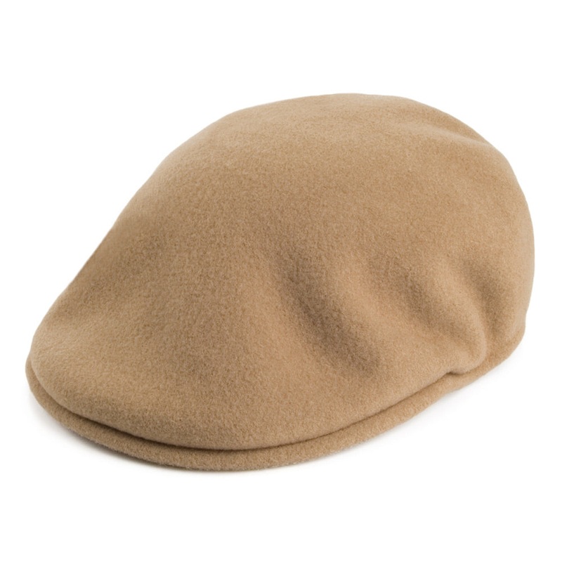 This Kangol classic flat cap in camel is known as the 504 and always looks great. The 504 wool flat cap is warm, breathable and durable. The brim is sewn to the crown and can also be curved for a better fitting cap. The Kangol kangaroo logo is embroidered at the back of the cap.