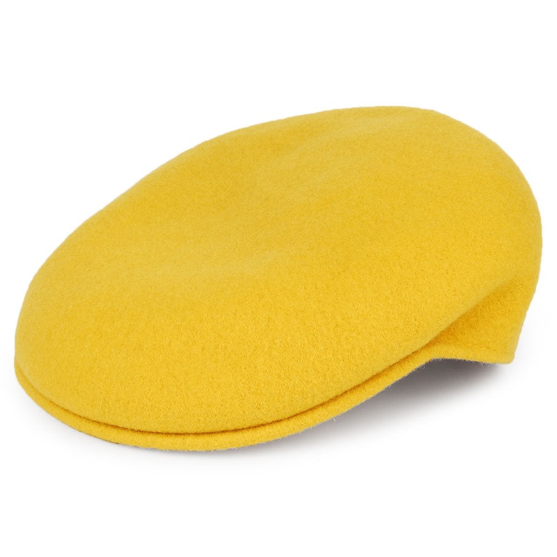 This Kangol classic flat cap in yellow is known as the 504 and always looks great. The 504 wool flat cap is warm, breathable and durable. The brim is sewn to the crown and can also be curved for a better fitting cap. The Kangol kangaroo logo is embroidered at the back of the cap.