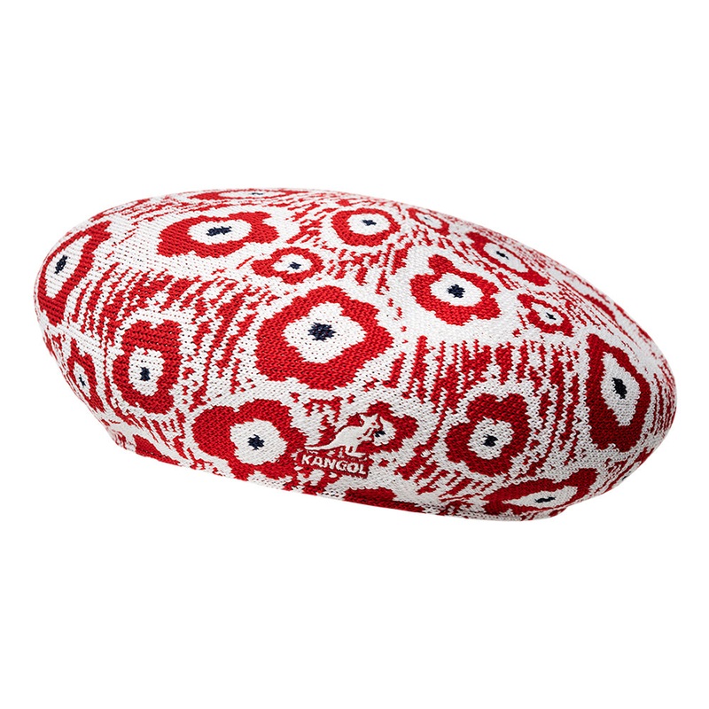 The Kangol Retro Flower Beret in red-white is a pop floral inspired, 3 colour knit style. The Tropic material is a blend of polyester and modacrylic which makes the hat extremely lightweight and durable. The floral pattern has a beautiful circular repeat around the head, and a soft sweatband inside of the crown gives you the perfect fit. This beret is finished with the iconic Kangol kangaroo logo embroidered on the front in matching colours.