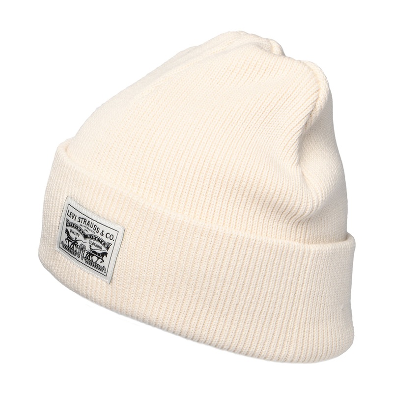 The Levi’s Women’s Backpatch Beanie Hat in cream is made of 100% cotton and is dual layered for added warmth. It feels luxuriously heavy. A Levi’s patch is sewn on the front of the cuff. Don’t miss out on this classic style for the season!