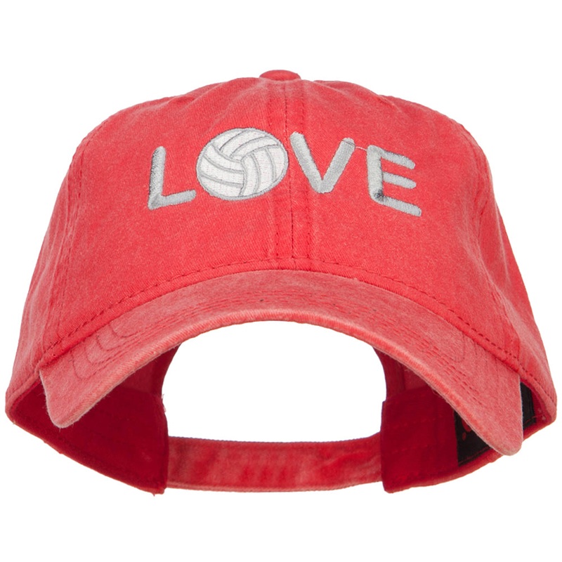 Love with Volleyball Embroidered Washed Cotton Cap Red One Size