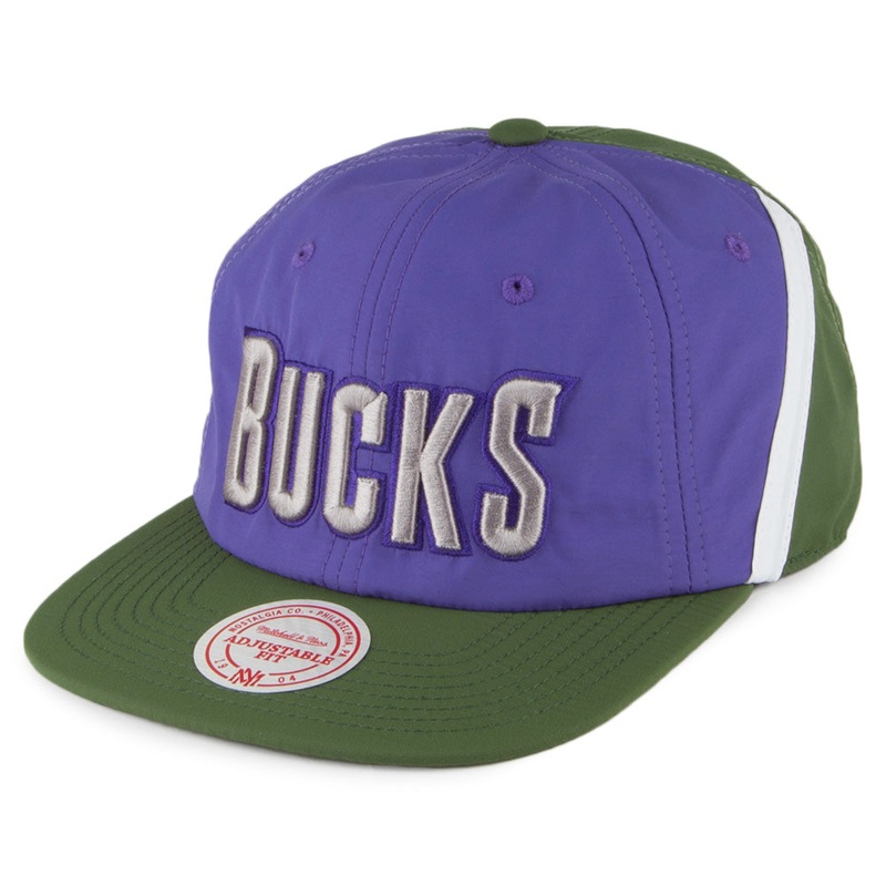 The Mitchell & Ness Milwaukee Bucks Anorak Snapback Cap in purple/green is sure to be a fan favourite. This 100% nylon baseball cap features a unstructured crown and a flat brim. The team name is embroidered at the front, logo at the back and Mitchell & Ness above the adjustable snaps.