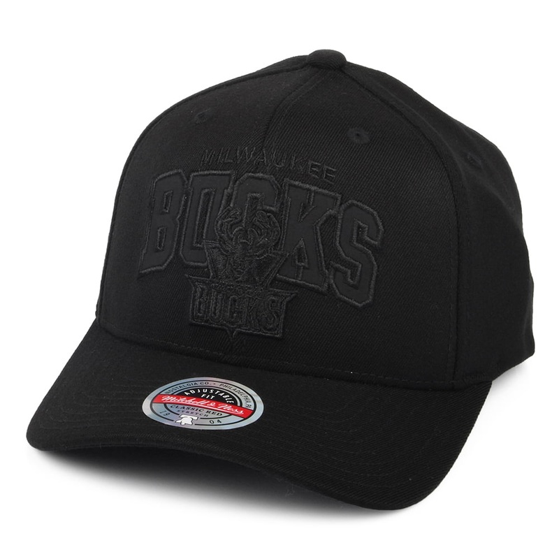 Here is the Mitchell & Ness Milwaukee Bucks NBA Black Out Arch Redline Snapback Cap. The hat features the team name and logo embroidered on the front of the hat in all black. The Mitchell & Ness logo is embroidered on the back of the hat. There is an adjustable snap at the back and a sweatband that will stretch for the perfect fit.