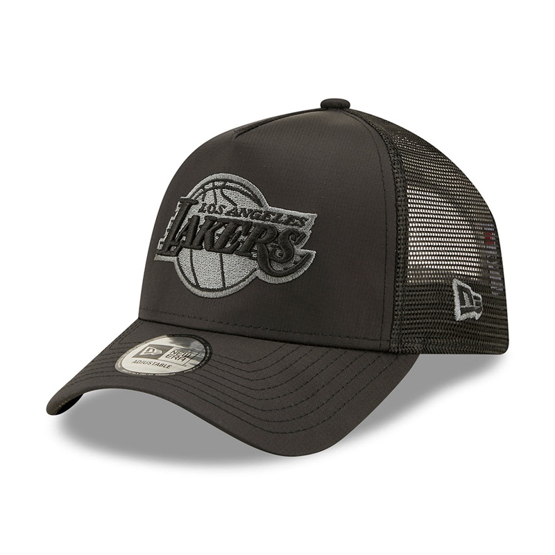 The New Era 9FORTY L.A. Lakers A-Frame Trucker Cap – NBA Tonal in black features the team’s logo on the structured front and the New Era flag embroidered on the side. There is an adjustable snap at the back for a perfect fit.