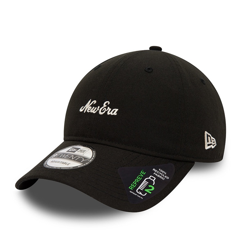 The New Era 9TWENTY NE Heritage Script Repreve Baseball Cap in black features the brand’s name embroidered on the front panels and the New Era flag embroidered on the left side. It is made of 100% recycled fabric from plastic bottles and comes with a curved brim and eyelets for ventilation. There is an adjustable strap with a metallic buckle at the back for easy sizing. As the cap is a 9TWENTY, it has a soft, unstructured crown.