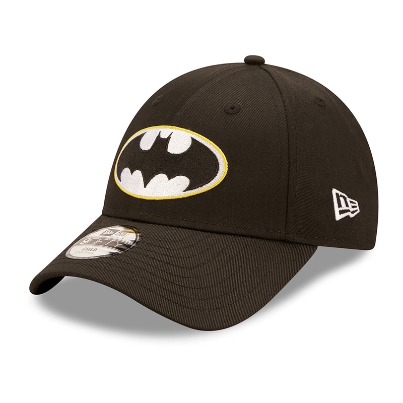 The New Era Kids 9FORTY Batman Baseball Cap – Character Logo in black features the iconic Batman emblem embroidered on the structured front panels. The New Era logo is embroidered on the side and there is an adjustable strap at the back that should allow this hat to fit your young one’s head.