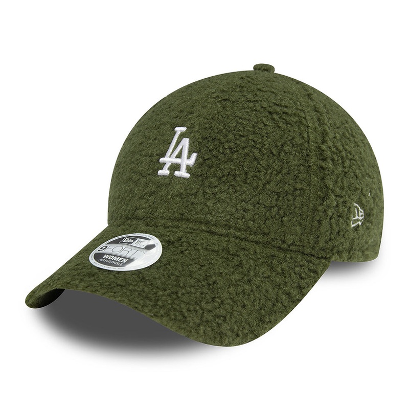 The New Era Womens 9FORTY MLB Borg L.A. Dodgers Baseball Cap in olive-white is made of a soft and warm faux shearling, perfect for the cold winter months! A mini team logo is embroidered on the structured front, and the New Era flag is embroidered on the left side. An adjustable strap at the back ensures a comfortable fit.