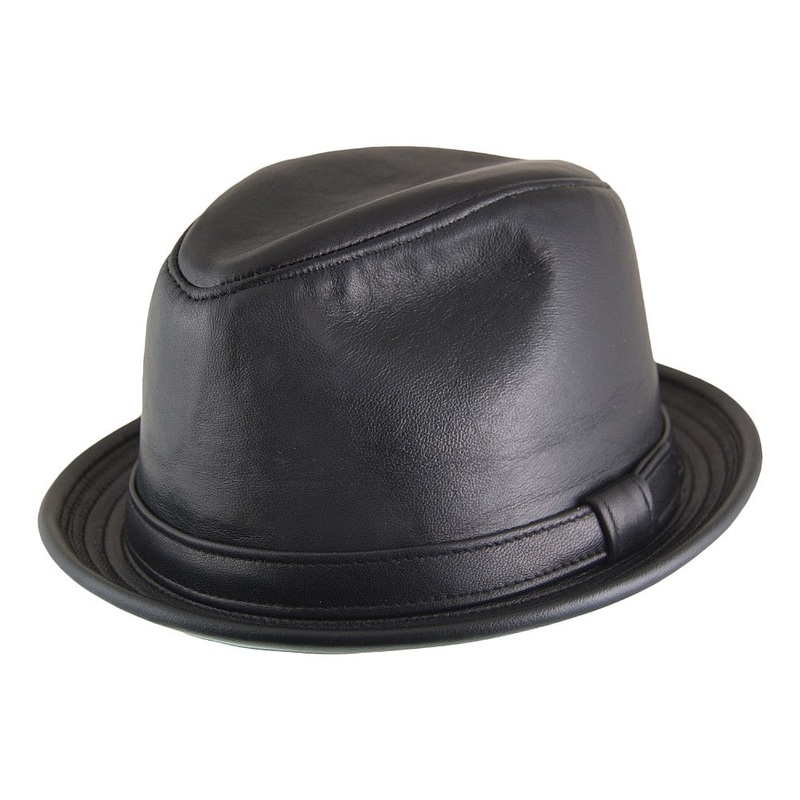 This is a top of the line leather fedora made by one of the premier hat companies from America, the New York Hat Company. The shockingly cool, soft and supple, genuine lambskin leather is as fine as weve seen from any current trilby manufacturer. This magnificent hat is fully lined in satin, with a high quality cotton sweatband for added protection and comfort. The hat has a 4 inch high crown and 1.5 inch wide snap brim and is finished with a matching leather hat band.