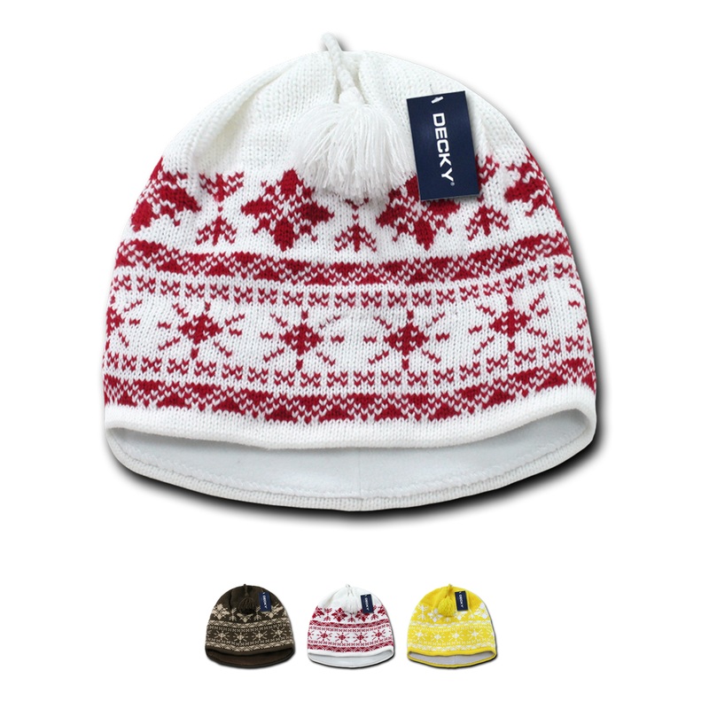 The Nordic Knit Beanie (Decky 631) is a stylish, fleece-lined beanie featuring an original nordic design and a braided tassel on the crown.