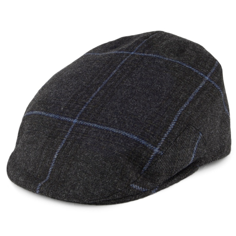 As always, Olney bring you superb quality hats. The Kinloch Tweed Saxony flat cap in charcoal-blue is Made in England out of 100% wool . There is a satin lining and a grosgrain sweatband on the inside.