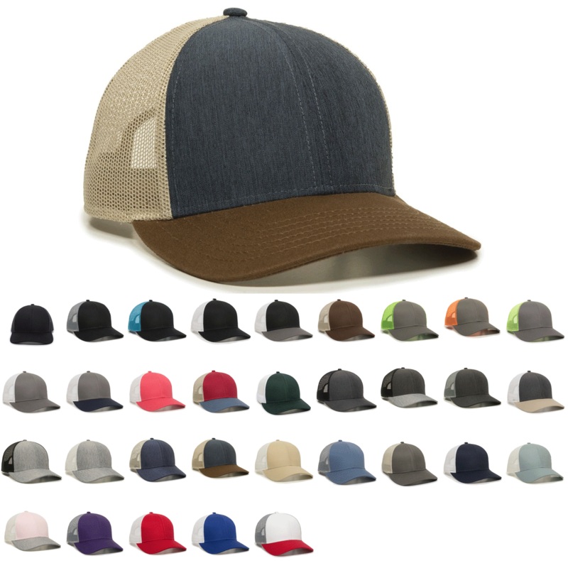 Outdoor Cap OC770 Premium Low Profile Trucker CapThe OC770 Premium Low Profile Trucker Cap raises the bar in consistency, fit, and finish. This lower profile and round crown structured hat gives off a streamlined look. Free of eyelets and without contrasti