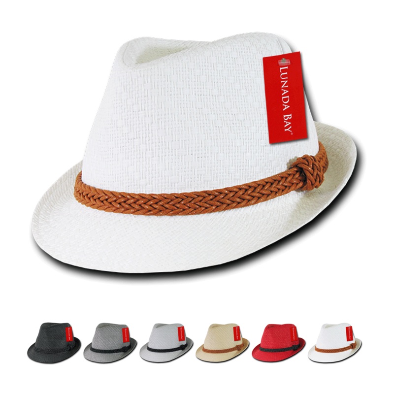 The Paper Straw Fedora Hat (557)by Lunada Bay is a fashionable and lightweight hat. This hat captures the classic fedora style wth a modern twist and features a fashionable braided hatband.100% Paper StrawBraided HatbandSizes: S/M, L/XLStylish and Fashiona