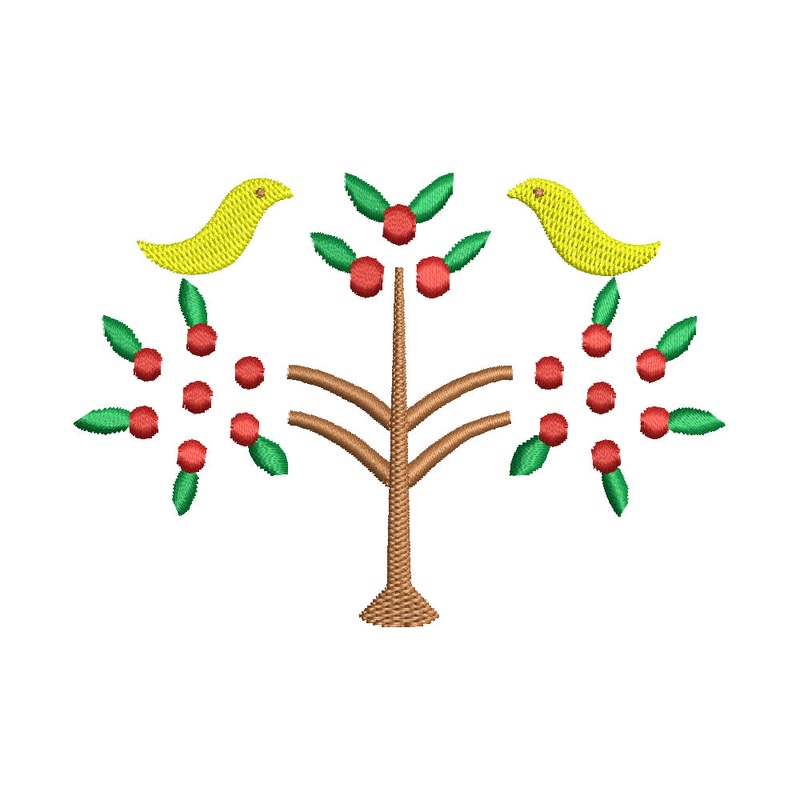 Swiss Folk Art with Birds and Tree Default Title One Size