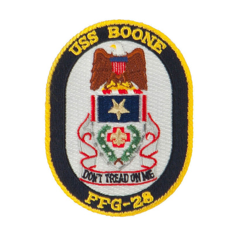Embroidery, Logo design with name and unit of USS FFG embroidered on one side.